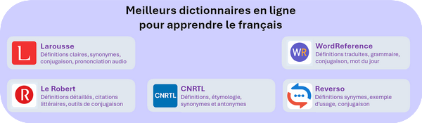 💡 Conseil pratique : n’hésitez pas à combiner plusieurs dictionnaires ! Par exemple, utiliser Larousse pour une définition rapide, puis WordReference pour voir des exemples bilingues, et enfin CNRTL pour explorer l’étymologie.